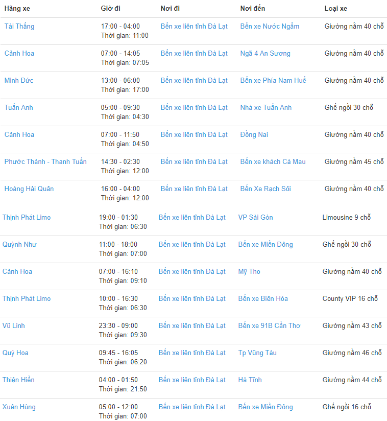 Danh sách một số nhà xe chạy từ bến xe Lâm Đồng đi các tỉnh hành khách có thể tham khảo.